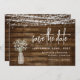 Rustikales Bauernhaus String Lights und Gipskraut in einem Jar Save the Date Hochzeitseinladungen auf Holz Hintergrund - beinhaltet eine schöne und elegante Schrift Typografie mit modernem Landhaus Sparkle für die besondere Hochzeitsfeier.