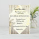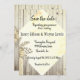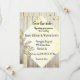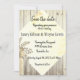 Rustikale Büttelholzplanken dienen als Kulisse für diese charmante Einladung. Eine Flasche mit Blume schmückt die links Ecke in einem ähnlich beigen Schatten. Ein Diamant mit hellbeigen Tönen ist der Mittelpunkt, an dem die Hochzeitsankündigung angezeigt wird. Der Charme des Landes