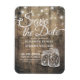 Rustikale Hochzeit speichert die Dattelmagnete-Vorlagen - elegantes, Save the Date geschriebenes Skript und Vintage Mason Jar String Lights auf rustikalem Holzhintergrund. Ein perfektes Design für Ihren großen Tag. Alle Textstile, Farben, Größen können an Ihre Bedürfnisse angepasst werden!