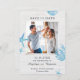 Dieser trendige Save the Date ist ein Thema für Wassersport oder Strand. Es ist mit weißem Holzboden ausgelegt und wirkt rustikal. Der Aquarellstil zeichne von Muscheln, Seestern und Korallen und dekoriert das Design. Ein Bild des Paares ist in der Mitte. Diese Karte ist ideal für eine Hochzeit am Strand, eine Hochzeit im Sommer, eine Hochzeit im rustikalen Stil oder eine Hochzeit in Urlaubsort. Der Look ist frisch, luftig und gemütlich.