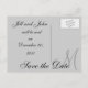 Modern, einfach, schwarz, grau und weiß Save the Date Postcard Design von Elke Clarke ©2008. Hochzeitsankündigung angepasst mit Datum, Vornamen und Initial. Wählen Sie auch Ihre Farben, um Ihre Hochzeitsfarbe Farbe.