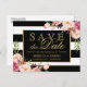 Save the Date - Schwarz-Weiß-Streifen aus Gold Ankündigungspostkarte