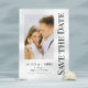 Save the Date Schwarz-weiße Stylish Script Modern Wedding Cards verfügen über einen weißen Hintergrund mit Ihrem eigenen Foto. Personalisieren Sie Ihren Text, indem Sie den Text in den dafür vorgesehenen Textfeldern bearbeiten. Entwickelt für Sie von ©Evco Studio www.zazzle.com/store/evcostudio