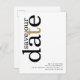 Minimalistisch Gold Schwarz-weißer QR Code Text Save the Date. Ein modernes typografisches Design, um Ihre Familie und Freunde zu einem rett Ihres Datums einzuladen, mit Rett Our Date in großer Typografie rotiert und auf der verlassen Seite oben in schwarz, mit einem goldenen Buchstaben "t" auf weißem Hintergrund. Personalisieren Sie die Erholung des Textes einfach. Fügen Sie Ihren QR-Code auf der Rückseite Ihrer Hochzeitswebsite hinzu, indem Sie den QR-Code des Beispiels ersetzen. Sie können QR-Codes kostenlos online erstellen. Suchen Sie einfach nach "QR Code Creator" und viele Optionen werden kostenlos erstellt.