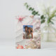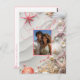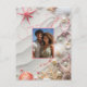 Save the Date Postkarte mit Ihrem Lieblings-Foto. Schöne tropische Muscheln, rosa Seesterne, rosa und weiße Perlen an einem weißen Sandstrand. Ideal für Ihre Hochzeit in Urlaubsort.