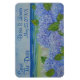 Diese Beach Theme Save the Date Magnete sind vollständig anpassbar und können für Hochzeiten oder andere Anlässe verwendet werden. Das Bild zeigt ein Gemälde von blauen Hydrangeas am Meer, ein Gemälde des beliebten Künstlers Brendan Loughlin aus Guilford, Connecticut.