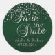 Save The Date | Silberpunkte und Grün | Personalis Runder Aufkleber