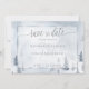 Hochzeit Save the Date | Silver Blue Winter Wonderland - Originelles Design von ©WhimsicalArtwork™ - Eine silberblaue Aquarelllandschaft mit handgemalten immergrünen Kiefern und ausreichend Schnee auf den Ästen, um Sie an einen knackigen Wintertag im Wald zu erinnern - umgeben von einem durchsichtigen weißen Overlay in einem silberfarbenen und blauen Rahmen - überragen Sie ihn mit handgeschriebener Kalligraphie in Grau und haben das perfekte Hochzeit, Babydusche oder Geburtstagssuite. Eine Kombination aus Skriptkalligraphie und einem minimalistischen, zeitgenössischen Text-Layout macht es zu einer trendigen Hochzeitssuite. Dies ist Teil einer Hochzeitsbriefmarkensammlung mit passendem Hochzeitszubehör des BarefootBride™.