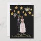 Save the Date Single-Karte für eine Halloween-Hochzeit. Das Design ist eine schwarze Karte mit einer Skelettbrücke und Bräutigam, Sternen und Gespenstern. Dank Pixabay und Creative Fabrica für einige der Elemente im Design. Die Wörter auf der Rückseite der Karte können geändert werden.