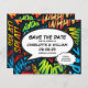 Personalisieren Sie mit Ihren Namen und Details, um das Datum Ihrer Veranstaltung bekannt zu geben. Comic Buch Pop Kunst-Thema modern, Spaß Retro-Design, ideal für Hochzeiten, Brautpartys, Babyduschen, Taufen, Verlobungen, Jubiläumsfeiern, Abschlüsse, Geburtstagsparty und andere besondere Veranstaltungen das ganze Jahr über! Ein cooles, trendiges und unterhaltsames Design, das den wackeligen Zap Pow in den Tag legt. Entwickelt von Thisisnotme©
