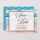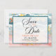 Helle und farbenfrohe Save the Date Karte für Strand oder Hochzeit in Urlaubsort, ändern Sie den Text selbst, wenn Sie bestellen.