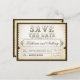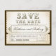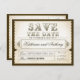 schöne Vintage Typografie Save the Date Tickets - Postkarten mit rustikalem altem Papierhintergrund und antiken Wirbel um Braut und Bräutigam.