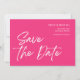 Laden Sie Ihre Lieben ein, mit dieser lustigen und einzigartigen rosa-weißen Karte, die ein modernes Drehbuch und eine Flamingo-Silhette auf der Rückseite enthält, Save the Date zu gehen. Personalisieren Sie diese, indem Sie Ihre Veranstaltungsdetails hinzufügen. Alle Schriftart-, Hintergrund- und Elementfarben können mit dem Design Editing Tool angepasst werden.