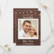 Herzlichen Glückwunsch zu Ihrer Verlobung! Der nächste Schritt ist, Familie und Freunde wissen zu lassen, dass Sie verlobt sind, verheiratet zu sein und wollen, sie Save the Date für Ihre Hochzeit. Wunderschöne weiße Saitenleuchten oder Märchenleuchten mit braunem rustikalem Holzhintergrund. Das Highlight dieses Designs ist eines Ihrer Lieblingsportraits als Paar.