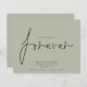 Der Haushalt wurde Save the Date für ewig blass gehalten. Ein Preis SMALLER 4,5" x 5,6" Alternative. Erhältlich in einem SEMI-GLOSS 110 lb CARD STOCK, der die Standardoption (dicker für Einladungen) ist, ODER einem SATIN FINISH 80 lb THINNER PAPER STOCK (ideal für Gehäuse). Umschläge sind optional und etwas größer als die Kartengröße. Ein einfaches Design auf einem Hintergrund von Salbei grün, um Ihre Gäste zu laden, um Ihr Datum retten. Wir entschieden uns für Forever, welches in einem stilvollen Set-Skript ist in der Mitte.Die Erholung des Textes können Sie leicht personalisieren. Text- und Hintergrundfarben können geändert werden, wenn Sie Ihr Hochzeitstil besser Anzug über die weitere Option anpassen möchten.