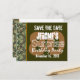 Hier ist eine trendige Save the Date Postkarte mit einem Waldtarnen-Camouflage-Druck für eine überraschende 80. Geburtstagsparty. Spaß! Der gesamte Text ist anpassbar.