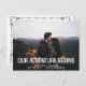 Unser Abenteuer beginnt Save the Date mit einer Postkarte mit einer modernen Textnachricht aus weißer Typografie. Fügen Sie Ihre Lieblings-Paare Foto oder Verlobung Foto zu erstellen Ihre eigene Hochzeit speichern Sie die Datumskarten. Dekorative Grenze auf Adressseite mit einer persönlichen Nachricht von Ihnen.