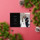 Dieses doppelseitige, vereinfachende Schwarzweiß-Foto, das den rett-the-date verkündet, erfasst das Wesen der Einfachheit und Eleganz. Das Foto mit schwarzer Blockierung, einem echten Rahmen aus Goldfolie und einem serifenlosen Schriftart auf der Vorderseite und einem anderen Foto mit der optionalen Meldung auf weißem Hintergrund auf der Rückseite.
