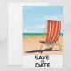 Save the Date Vintages Strandposter - Hochzeit oder Feiern Poster eines Liegestuhls auf einem Sandstrand.