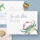 Teilen Sie Ihre Verlobung mit diesen nicht-Foto Save the Date Hochzeitseinladungen in Postkartenformat mit, die sich perfekt für eine Strandhochzeit in Myrtle Beach oder jede Feier an der Küste eignen. Dieses Design verbindet den Wasserfarbencharm mit den Themen Hochzeiten am Strand und verbindet meine originale blaue Krabbe in lebendigen Rottönen, Blues und Grüntönen. "Save the Date" ist in trendiger Schriftzeichen-Typografie gestaltet, die Handschrift nachahmt, während Ihre Namen, Ihr Hochzeitstag und Ihr Standort Set in einem zeitlosen Serif-Schriftart sind. Ideal für Hochzeiten am Strand, für Ausflüge und für Feierlichkeiten am Zielort bietet diese Karte eine stilvolle Möglichkeit, Ihre spannenden Neuigkeiten zu teilen. Entdecken Sie mehr Strand Hochzeit Inspiration und individuelle Designs von Victoria Grigaliunas bei DoTellABelle auf Zazzle.