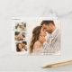 Modern “Save the Date” wedding postcard featuring an elegant couple design with 4 romantic photos. This stylish engagement announcement card uses a clean white brush script typography for a timeless and sophisticated look. Perfect for weddings, engagements, and romantic celebrations, this minimalist layout highlights your love story beautifully.