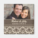 Lass Familie und Freunden mit diesen Magneten "Save the Date" über deine bevorstehende Hochzeitsfeier Bescheid. Passen Sie Ihr Foto und Ihr Hochzeitstag an. Schöner brauner Damast.