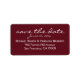 Dieses Label zeichnet sich durch ein einfaches Design mit "Save the Date" in einem handgeschriebenen Schriftart aus. Bitte stellen Sie sicher, dass Sie die gewollt Labelgröße bestellen. Es gibt drei Optionen, von einem großen Versandetikett bis hin zum traditionellen Rücksendeetikett.