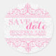 Save the Date weiße Damasken und rosa Spitzen Runder Aufkleber