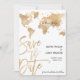 Save the Date Ziel World Map Gold Herzstück Einladung