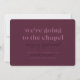 Diese beerfarbene Ankündigung Datum freihalten enthält die Worte "wir gehen in die Kapelle" in einem fetten Schriftart und "wir werden verheiratet" in einem lässigen Drehbuch. Es bietet Platz für Ihre Namen, das Hochzeitstag und den Ort der Hochzeit.