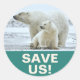 "Save Us!" Global Warming Slogan with Polar Bears Runder Aufkleber