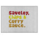 Saveloy, Chips & Curry Sauce. Schneidebrett