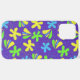 Farbenfrohe Blumenklappen auf lila Hintergrund