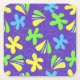 Farbenfrohe Blumenklappen auf lila Hintergrund