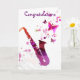 A cute design of a pink and purple saxophone with musical notes and butterflies and "Congratulations" slogan. This whimsical design is perfect for music lovers all over the world. This card can be fully customised to include any greeting you want, for example thank you, happy birthday usw.