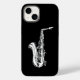 Design mit kohlefarbener Illustration von Saxophon auf schwarzem Hintergrund; elegantes, einfaches Jazz-Musikinstrumentdesign