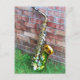 Entwürfe von Susan Savad — Im Aufenthaltsbereich vor der Gedächtnisfeier lehnte ein Mädchen in einer der High School-Bands ihr Saxophon an eine Ziegelwand und machte ein Foto davon mit ihrem Handy. Sie mag wohl ihr Saxophon. Während sie es fotografierte, machte ich auch ein Foto davon.