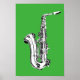 Design mit kohlefarbener Abbildung von Saxophon auf grünem Hintergrund; elegantes, einfaches Jazz-Musikinstrumentendesign