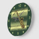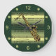 Saxophon~Walzblatt Musik~Gold/grüner Hintergrund Große Wanduhr