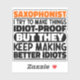 Saxophonistische Redewendungen "Saxophonist Ich versuche, Dinge zu machen, die nicht bewiesen werden, aber sie Behielt, bessere Idioten zu machen". Nimm dieses lustige sächsische Design als lustige Geschenke für eine phantastische Mutter, einen Vater oder einen Freund.
