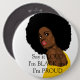 That afro says it all. She's hat was in Among Queens und She Knows It. Her colorful queen garb and over-stated red lips, say no less. She'll stand out when you pin this button anywhere.