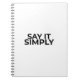 Keep your thoughts organized and your aesthetic clean. This "Say it Simply" notebook is designed for clarity and focus. Featuring sharp black typography on a crisp white cover. Ideal for minimalists and creative professionals.