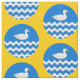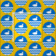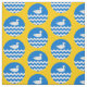 "Per Fess, gewelltem Gewand und Azurblau, einer Ente mit naivem Kontournierargent, geworben oder." Allover-Muster des Abzeichens der Bevölkerung für die Barony of An Dubhaigeainn in the Society for Creative Anachronism.