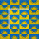 "Pro Blässe und oder, eine Sonne hat sich ausgetauscht." Allover Muster des Abzeichens der Bevölkerung für das Königreich Atenveldt in der Gesellschaft für kreativen Anachronismus.