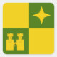 “Quarterly or and vert, in bend sinister a mullet of four points and a castle or.”