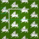 "(Fieldless) Ein Flügelpassant der geflügelten Katze, ausgestreckte Stirn, Flügel erhöht und versteift, argent." Allover-Muster eines Abzeichens für die Baronie des Windmasterhügels in der Gesellschaft für kreatives Anachronismus. Die Hintergrundfarbe (grün) kann auf Anfrage geändert werden.