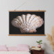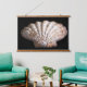 Ein Stillleben-Foto einer großen Jakobsmuschel-Muschel, mit lila und orangefarbenen Linien, Set auf schwarzem Hintergrund. Copyright ©Kimberly J Tilley.
