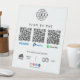 Make checkout simple and professional with this custom business logo QR code scan to pay tabletop sign, designed for modern, cashless businesses. Add your company logo, business name, payment QR code, and custom text, along with social media icons to help customers easily connect with your brand.