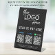 Einfaches schwarzes Tischschild für Ihr Geschäft mit Venmo-, Paypal- und CashApp QR-Codes für Kunden zum Scannen von Zahlungen. Fügen Sie Ihr Logo, QR-Codes und Firmennamen, Telefonnummer und Straßenadresse in einfacher weißer Schrift hinzu.