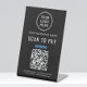 Einfaches modernes schwarzes Tischschild für Ihr Unternehmen mit einem Venmo QR-Code für Kunden, die nach Zahlungen suchen. Fügen Sie Ihr Logo, QR-Code und Firmenname, Telefonnummer und Straßenadresse in einfacher weißer Schrift hinzu.
